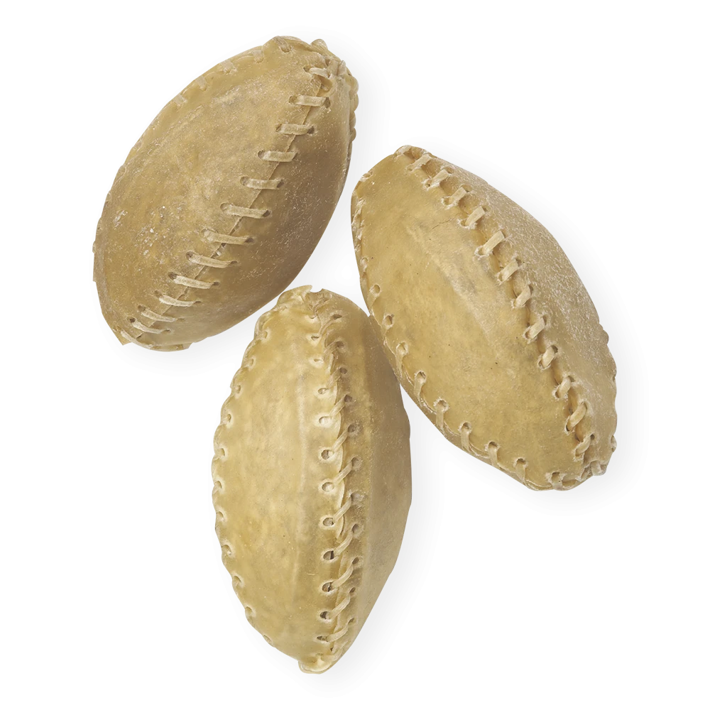 Ready, set, catch! Treat your dog to some flavourful chews with our Americal Football. Made of all-natural rawhide this football shape has the look and feel. Your dog will love running for this hard and strong dog chew.