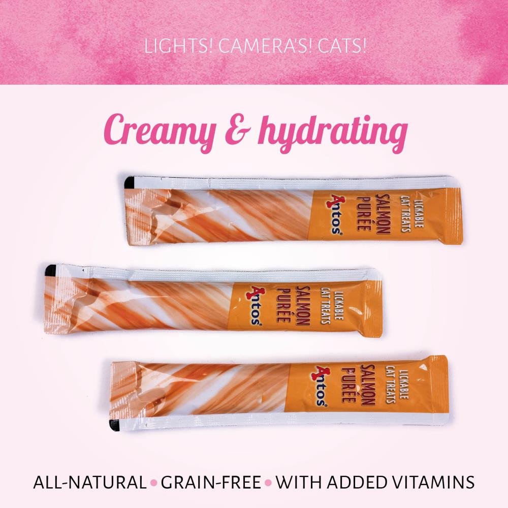 Give your cat the ultimate treat with Cat Treats Purée Salmon. These single-serve purees are made with real salmon and contain various vitamins. Your kitty will love the soft and moist texture. They provide essential moisture (90%) to help your cat stay hydrated. Serve as a snack, treat or topper.