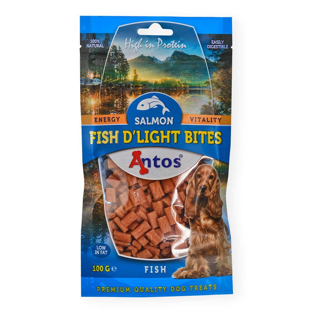 Loaded with the taste of salmon for an irresistible flavour. Our Fish D'light Bites make treat time even more delicious. They are perfect for training or anytime your dog deserves a wholesome, sugar-free reward.